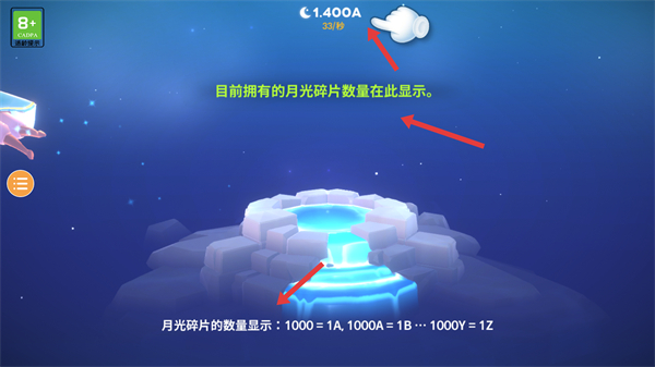 1、了解月光碎片的数量显示规则关注界面上方的月光碎片数量,熟悉游戏的资源系统为后续操作做准备。