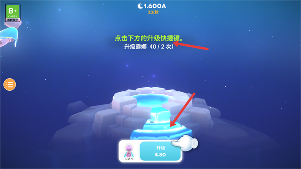 2、点击下方的升级快捷键升级露娜提升角色等级,按照提示完成升级操作增强角色能力。