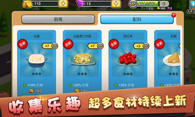 1、随着游戏进程,可以扩建餐厅,并更换不同风格的装修主题。