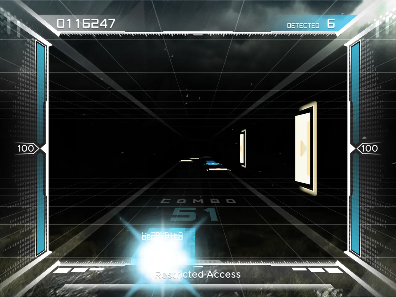 白片只会出现在判定面上,这里分享一个小技巧:白片下落位置会有相应的提示,提示中的正方形会逐渐扩大直至于方框重合,这时点击相应判定区域即可打出[DECRYPTED]效果