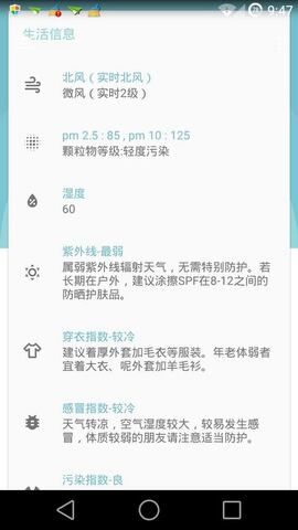 空气质量——覆盖3162个县市的实时空气质量指数;并增加了5天的雾霾预报。数据来源于环保部门权威监测站,每小时更新一次,确保信息的准确性和时效性。