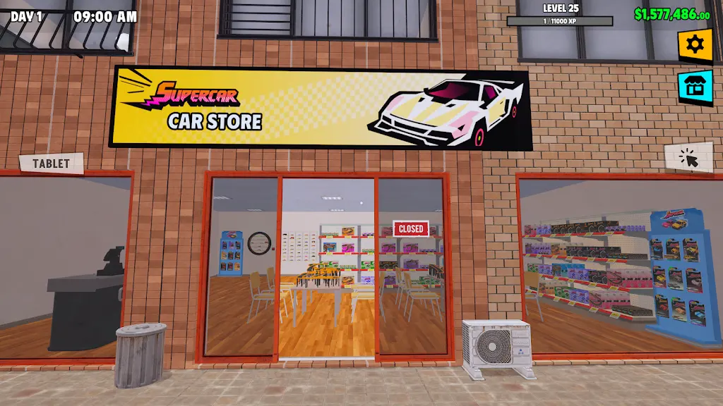 2、画面精美逼真,3D 建模细腻呈现跑车、店铺细节。跑车模型酷炫,店铺场景生动,营造沉浸式经营氛围。