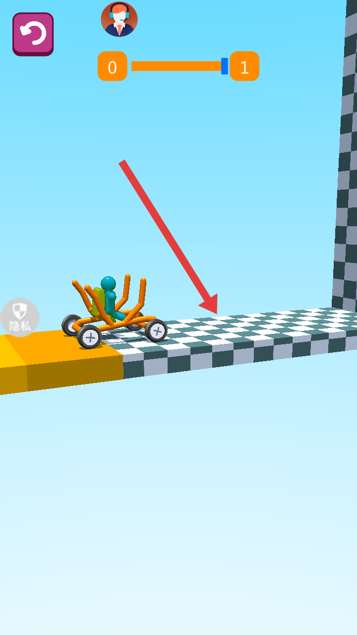 2、小车赛道上行驶,赛道有起伏和缺口,需通过操作让小车顺利前行,上方还有进度条显示闯关进度。