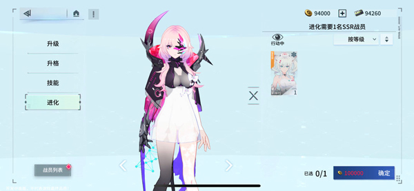 3、升格需消耗同名角色,从SR升至SSR要四个同名角色。不过,角色一旦升到SSR便无法再进行升格,此时需进行进化。进化相对便利,只要是相同等级稀有度的角色都能作为材料。至于后续进化的具体方向和级别,目前暂不清楚。