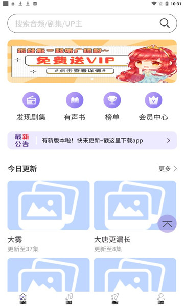豆腐fm首页推荐的广播剧作品资源丰富,你听过的广播剧都会在我听功能栏目中呈现,查看和继续收听会更加方便。每日坚持在豆腐fm签到可以领取更多金币,用来兑换更多VIP广播剧资源,精品热门推荐,很多书粉比较多的作品广播剧资源这里都有,实时更新推送,搜索你喜欢的作品名字或者喜欢的声优,就能更快找到想听的。