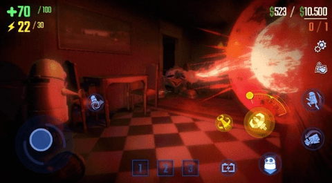 3、成功进入地图后,界面左侧为移动操控区域,右侧包含跳跃、蹲伏与翻滚等动作按键,下方中间的“123”为玩家的储物格,可暂存途中拾取的道具或物品。