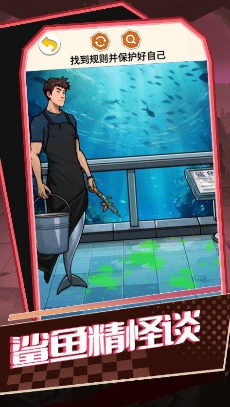 5、接着来到鲨鱼馆,点击贴在玻璃上的纸条,出现第二张规则。