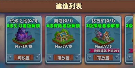 试炼之地的建造解锁需要通过冒险等级达到3级见习者