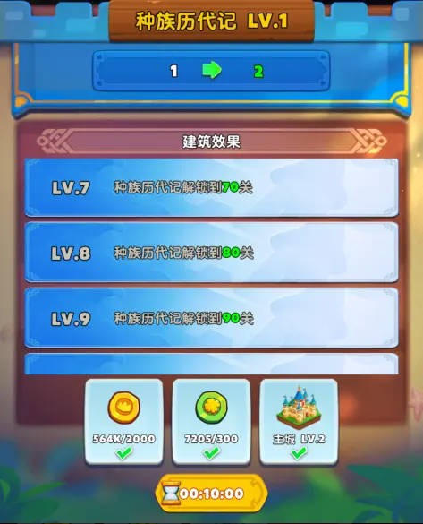 升级种族历代记可解锁种族副本的后续关卡,建筑等级越高关卡解锁越多奖励越是丰厚。
