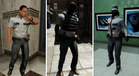 保安的官方版本,血量也是保持在每个难度40点,伤害与普通保安无异,区别就是所有的这种保安都持有洛洛克18C手枪,而且衣领上又一个特别装,比(low)的手电筒,潜入中分分钟暴露了他的位置。