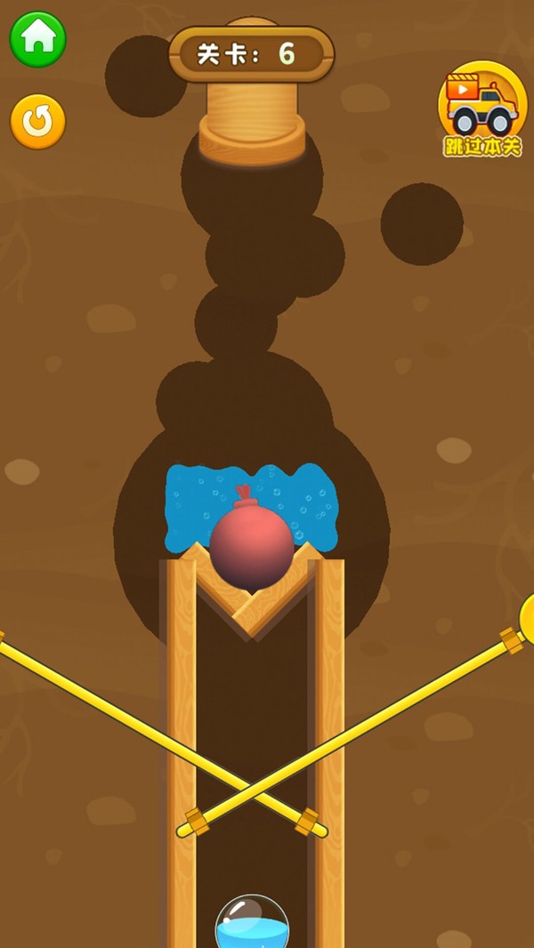 1、简约卡通风格,创意想法想出最佳的营救方案,开启不同的拉针机关;