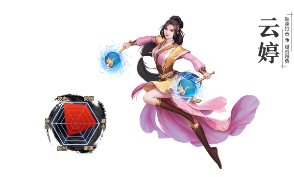 云婷属于近战职业,她修炼冰属性的内功,虽是女子,却使用一对大锤作为武器,每次攻击都将给敌人带来最沉痛的打击。高机动性和高输出,以及持续叠加buff的能力,让她在PK或副本中都能游刃有余。