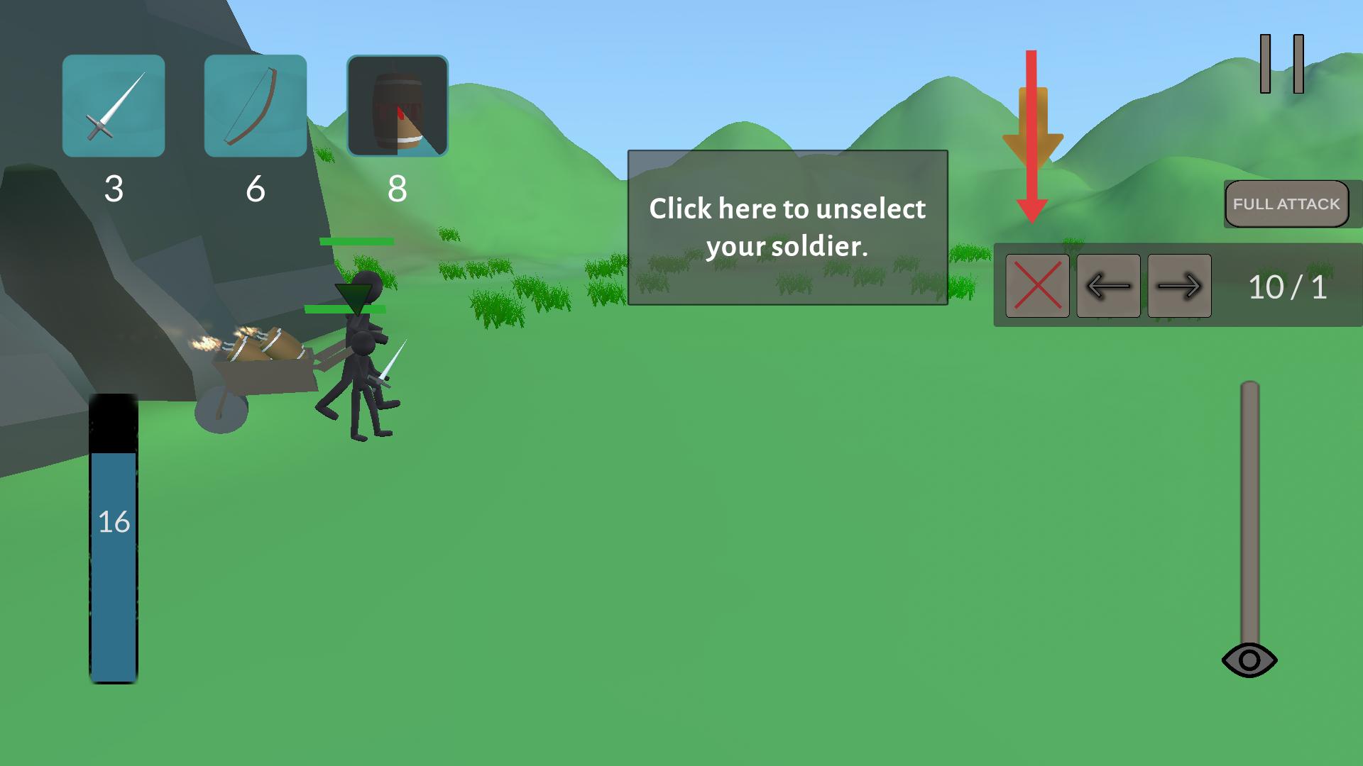 4、提示点击可取消选择士兵,当需要调整操作或更换目标时,点击对应取消选择的区域,取消对当前士兵的选择,以便进行其他操作,灵活掌控战斗。
