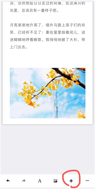 此外,当没有选中正文编辑区域里任何组件时,点击编辑页面底部的“A”图标,可以添加空白的文字组件在正文编辑区域的后面。