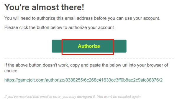 3、登入邮箱,点击Authorize来进行验证;