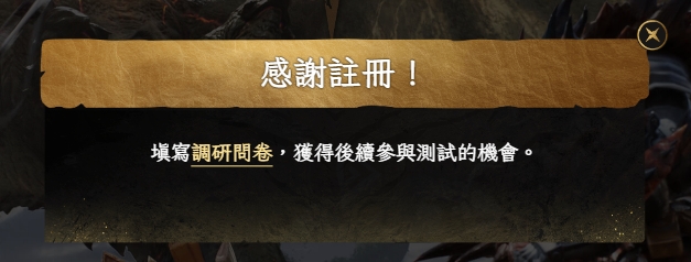 3、预注册成功,这时会显示邀请玩家填写问卷调查,点击调研问卷