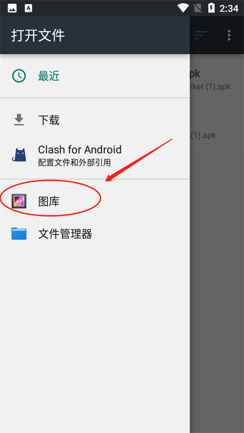 3、选择【图库】。