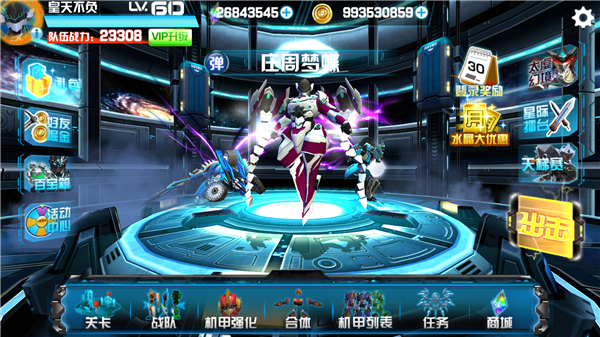 4、在游戏中,机甲共有4个部分可供调整。分别有:机甲升级、武器升级、机甲进化、机甲合体。目前合体功能暂时还没开放。