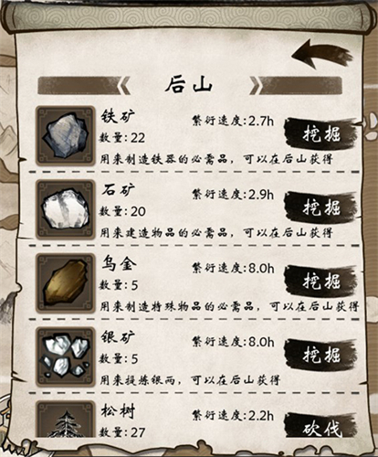 5、山上有着丰富的资源可以挖掘和砍伐,还有各种动物可以狩猎。