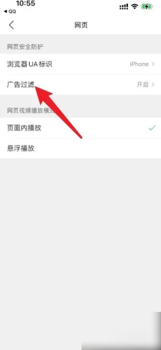 2.进入网页设置页面,找到【广告过滤】选项