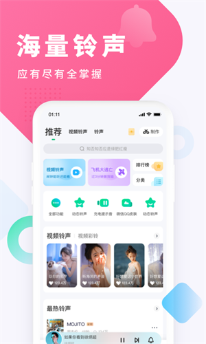 1、轻松找到自己喜欢的铃声,丰富的铃声资源随意挑选,轻松找到自己喜欢的铃声类型;