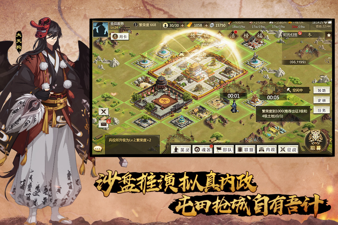 全战天下是一款集结了历史上各个时代英雄豪杰的开放性沙盘策略手游,由200多万格可自由争夺的地块组成,真实重现了乱世纷争,群雄逐鹿天下的宏大场面。 在这里,我们不设置VIP特权,不出售资源和体力,也不提供类似高级迁城的功能,不设置行军付费加速功能,你可以通过攻城略地、民情任务、秘境闯关、联盟任务、纪元系统等玩法获取资源,公平对决,快速成长,真实体验策略博弈的魅力,感受波澜壮阔的乱世征途!