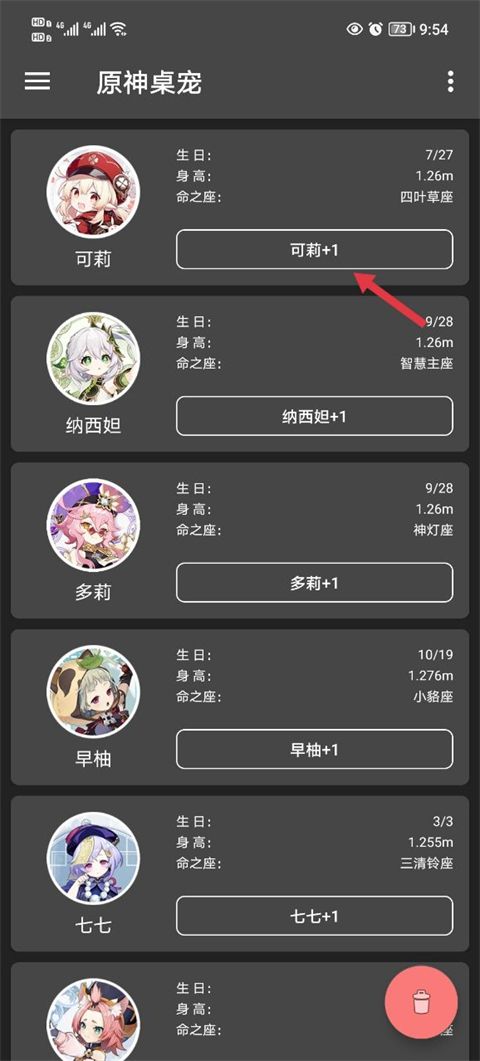 2、软件内有6个不同的原神游戏角色,供玩家们可以来进行挑选与设定使用的;
