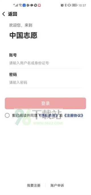 2、有账号的可以输入账号、密码登录,没有账号的点击“我要注册”;
