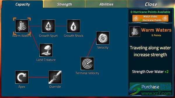 5、在进关卡之前点击下方的“Upgrades”可以强化台风的威力。
