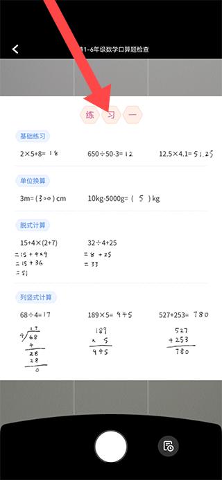 3、口算题练习界面,涵盖基础练习、单位换算、脱式计算、列式计算等题型,有练习按钮,方便学生进行数学口算训练,提升运算能力。