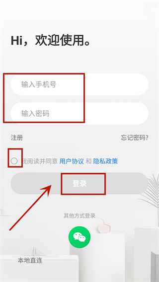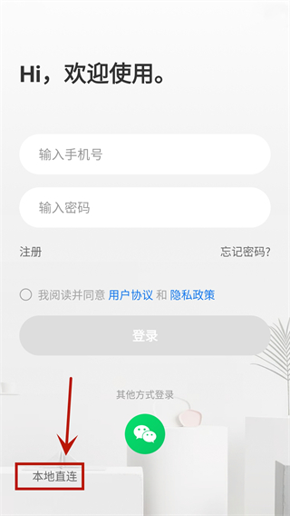 3、若不想进行注册还可以选择本地直连,免登录即可绑定设备。
