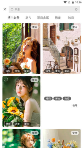 氛围感滤镜分类:博主必备、复古、落日余晖、萌宠、秋日