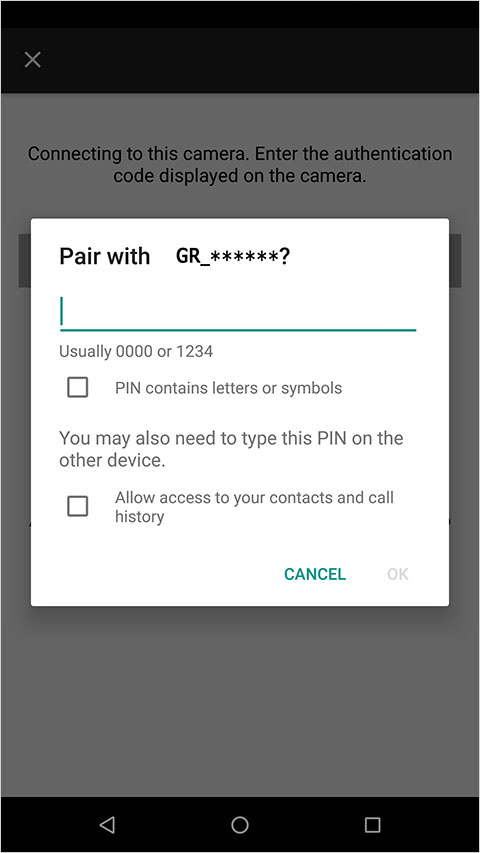 ③ 在应用程序的配对屏幕上输入显示的设备名称。