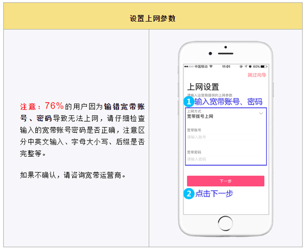 上网设置:智能识别上网方式,3步完成设置,上网轻松愉快;