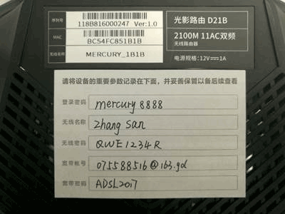 路由器管理员密码和无线密码很容易忘记,为此Mercury路由器贴心的准备了一张小贴纸,建议您将设置的相关密码填写在随产品配送的“路由器参数记录标贴”上,并将标签贴于路由器底部,方便日后管理。如下图所示:
