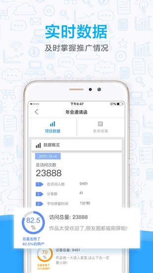 MAKA提供详细的访问报告、受众群体特征、城市分布、访问设备型号等,帮助用户从数据中发现针对性问题并随时调整,实现更高效传播刷爆朋友圈。
