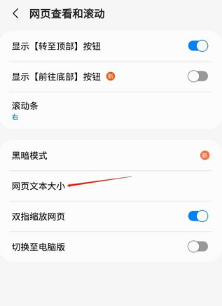 4、选择网页文本大小。