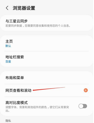 可在三星浏览器设置中启用高对比度模式,适合需要增加对比度,以便更舒适地浏览网页的用户,例如视力受损用户。