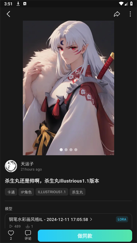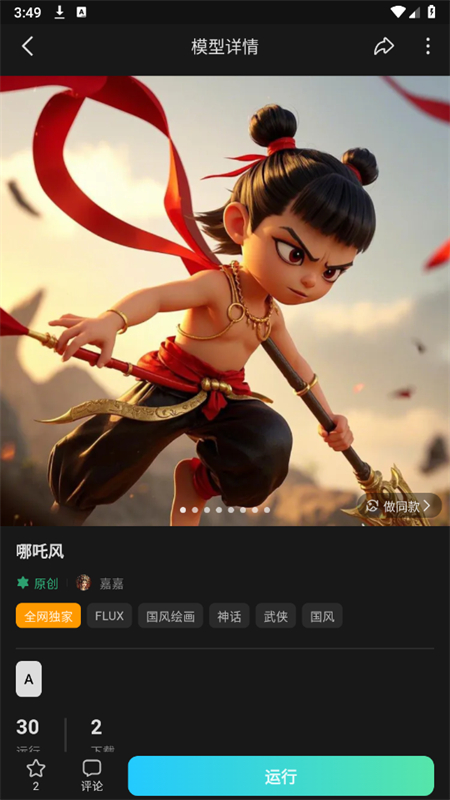 3、接下来我们可以直接选择自己感兴趣的AI图片生成模型,点击「运行」即可使用该模型进行AI图片生成,或是点击「做同款」按钮直接引用提示词生成相似的图片。