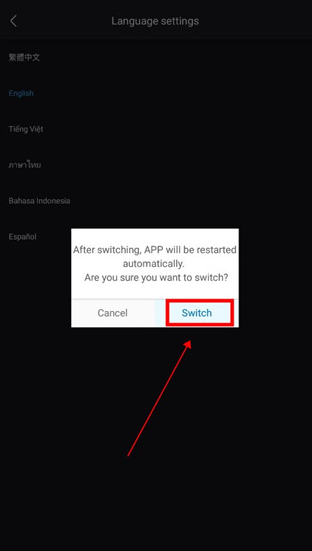 弹出选项后,点击右边的【Switch】切换,然后等待app重启即可完成设置。