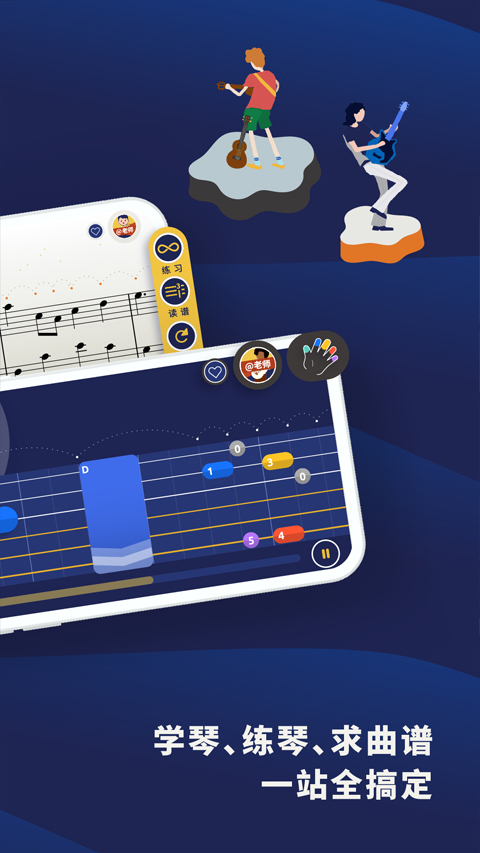 *让你从此告别枯燥乏味的学吉他历程,在这个平台上以玩游戏的方式就能学好吉他。