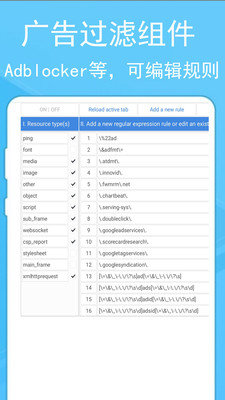 3、支持三款屏蔽广告的组件:AdBlocker Ultimate,Ghostery,Rule AdBlocker;