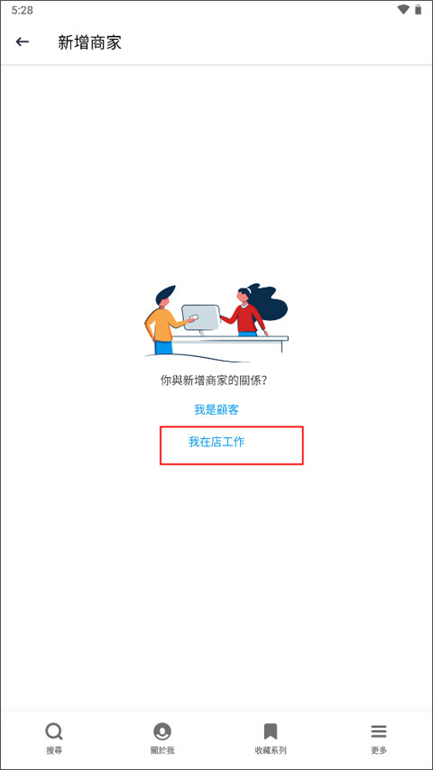1、打开app默认进入到“搜寻”板块,点击切换到【更多】页面,找到Yelp商户专用中的“新增商店”。