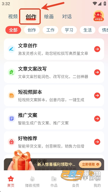 用户们还额可以借助创作工具生成爆款视频文案