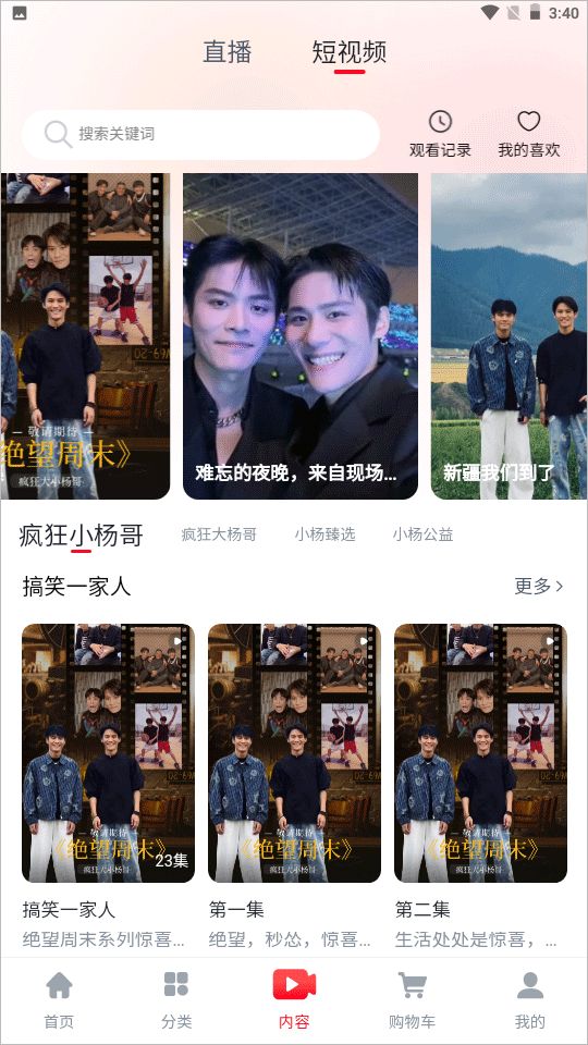 4、点击右侧的短视频还有小杨哥、大杨哥的搞笑作品