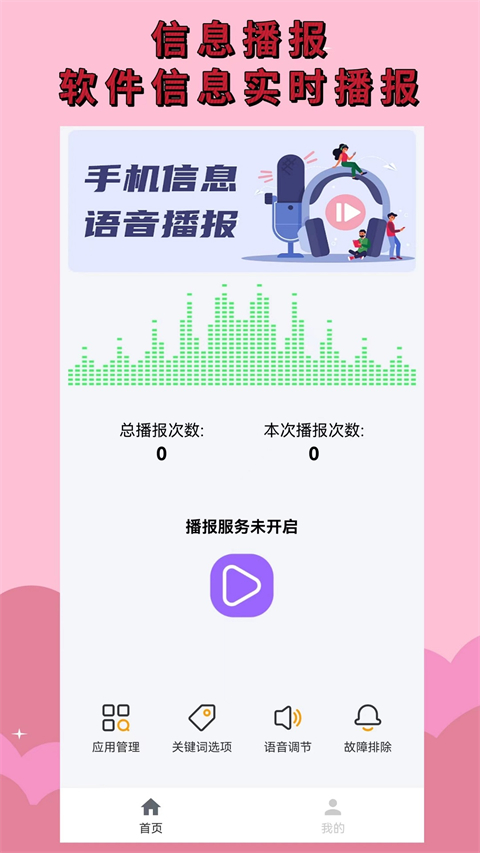 1、下载进入语音播报助手app,点击首页中的播报按钮;