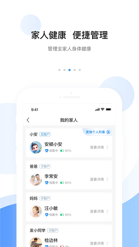 1、登录APP后,可以在首页对家人的设备进行绑定,身体出现警告第一时间告知。