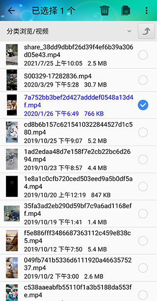 2、这里以视频为例,找到并勾选要转换的视频文件。