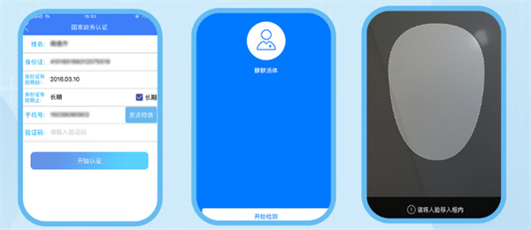 3、在掌上登记App完成上传个人身份证正反面并进行人脸活体检测,认证成功后,用户注册完成。