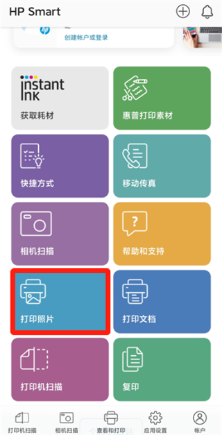 1、打开HP Smart,点击打印照片,选择要打印的照片。